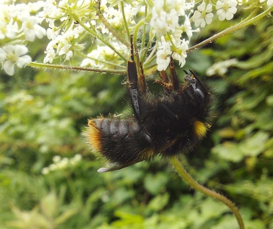 Description: Snoozing Bumble Bee in the flower meadow.
