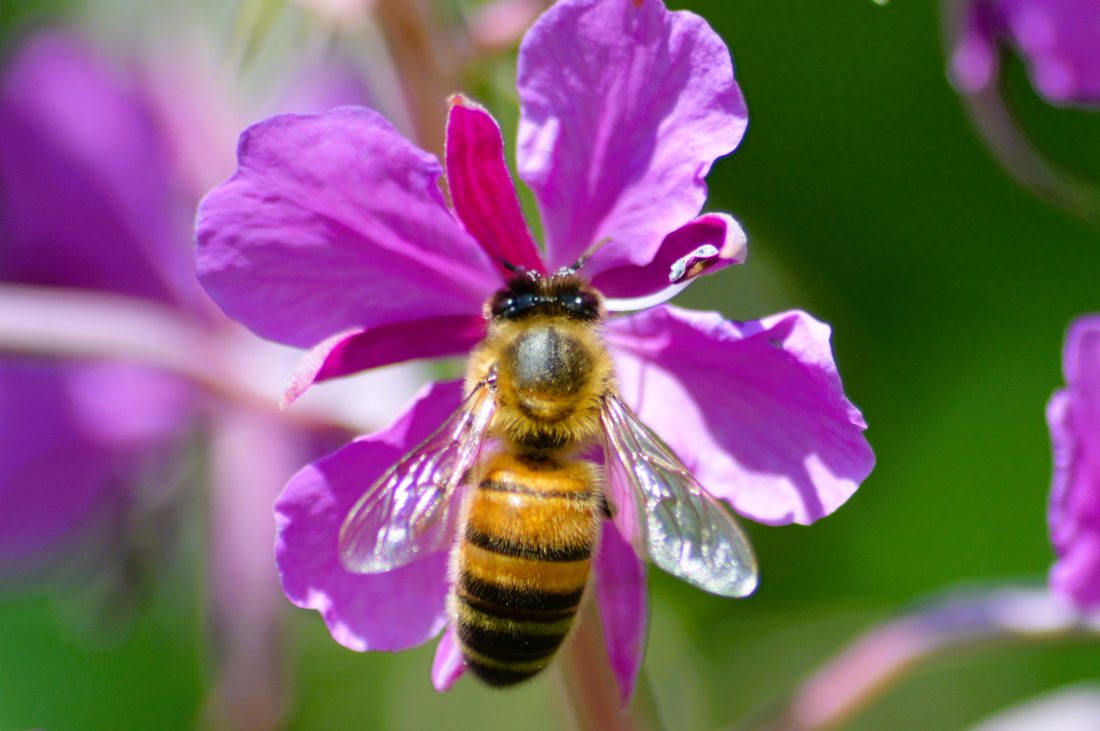 Description: Framed by the vivid magenta petals of rosebay willowherb, this honeybee is captured in exquisite detail as it pauses to forage. The delicate veins in its wings and the pollen-speckled hairs on its body highlight the intricate connection between pollinator and plant. This macro shot is a celebration of the quiet beauty found where bees and wildflowers meet.